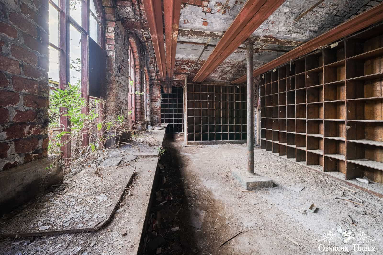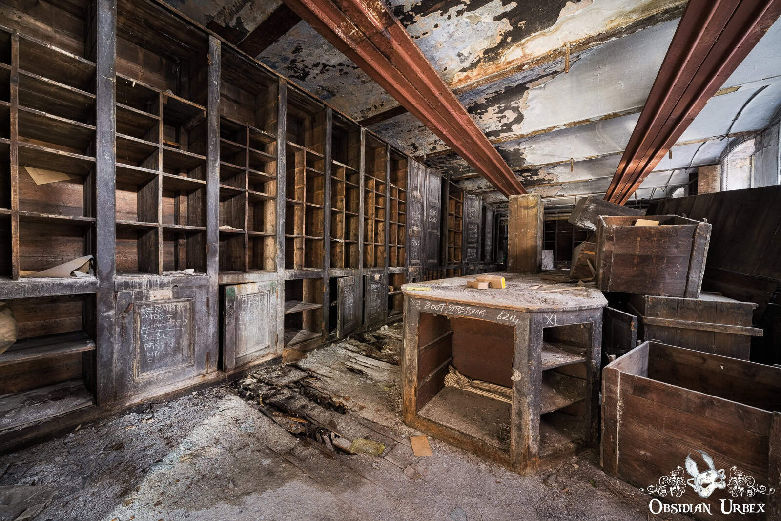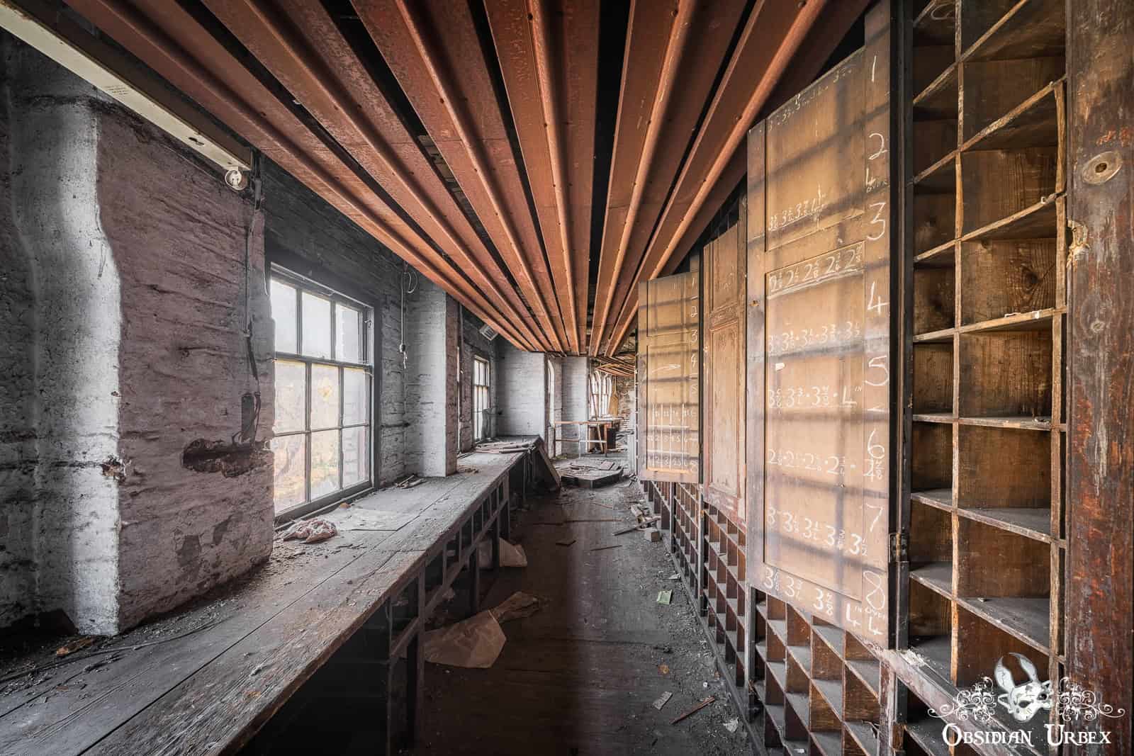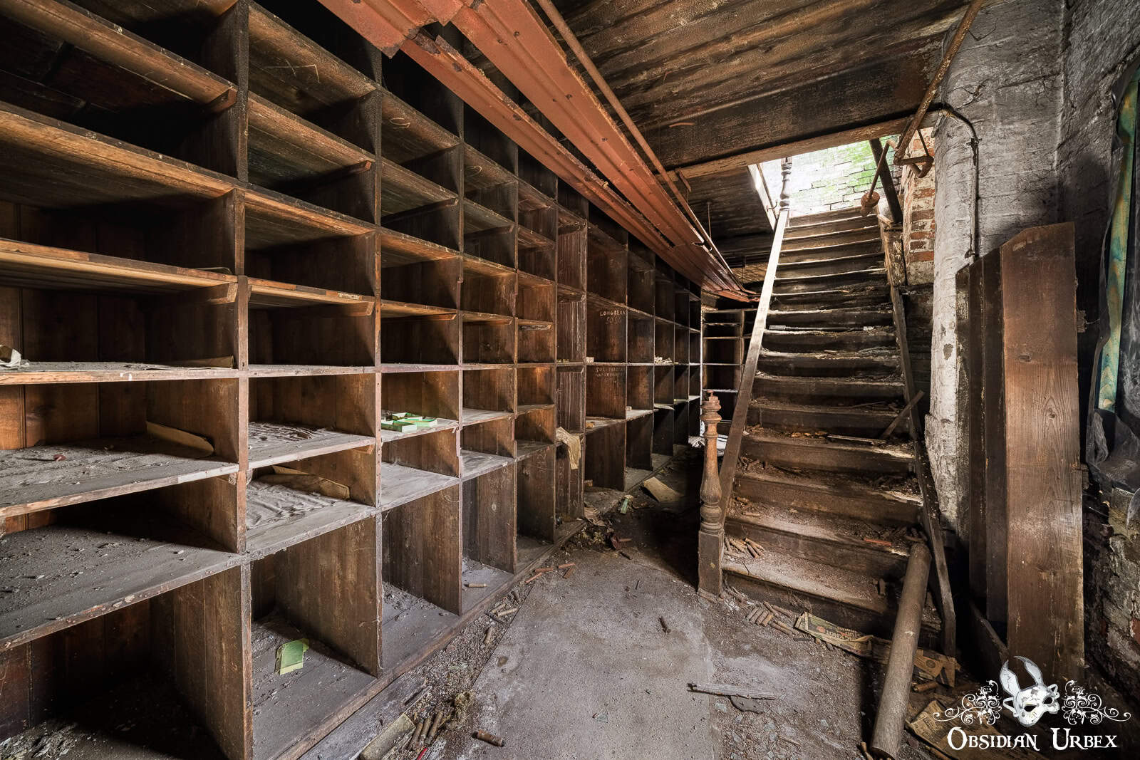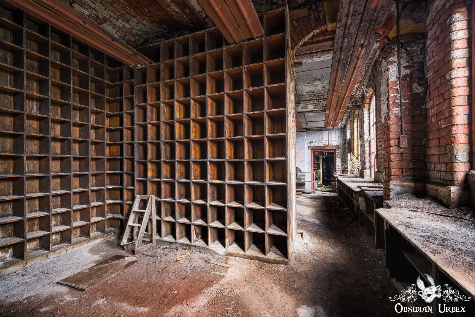 Heavy forging hammers and grinding wheels remain in the ground-floor workshops. The upper floors were used for lighter assembly and storage. These area feature wooden racks designed specifically to hold thousands of individual tool components. These racks still feature chalk markings and pinned paper notes, part of the stock control systems of the day.
