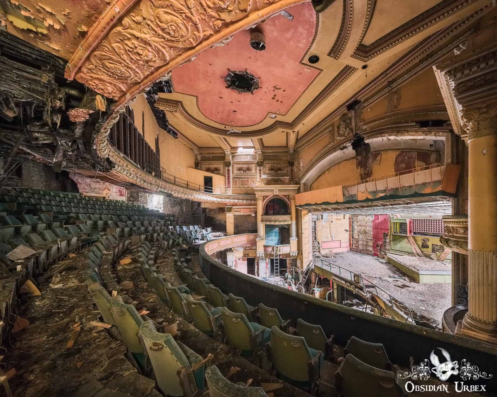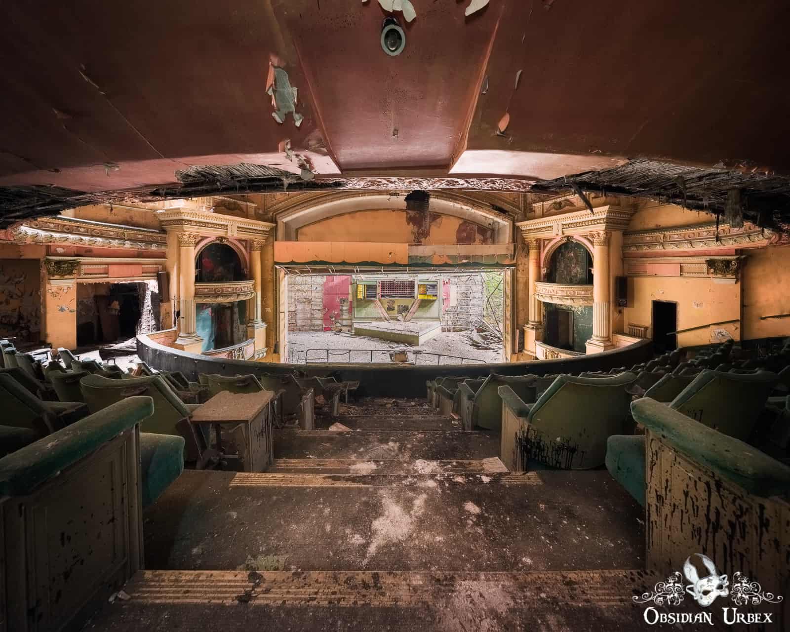 The Fallen Empire Theatre is a Victorian/Edwardian-era auditorium. It was built just before the dawn of the 20th Century. After 100 years of glory, it is now derelict. A failing roof and inclement British weather have taken their toll. Water ingress has caused substantial damage.