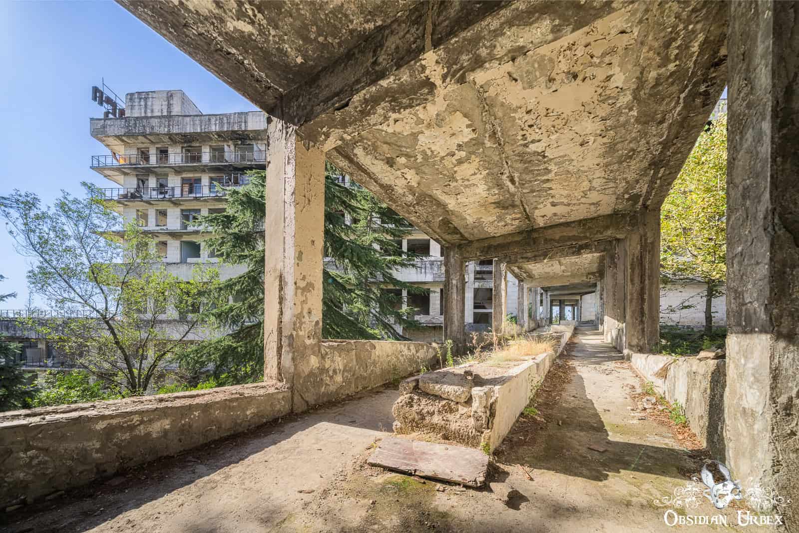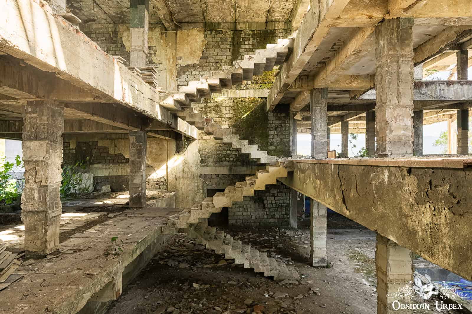 Very little information or documentation exists about this specific hotel. What is clear is that the hotel closed soon after the Soviet collapse. With no state funding and the loss of the regular stream of guests, Hotel Sakartvelo eventually joined the long list of abandoned Tskaltubo buildings.
