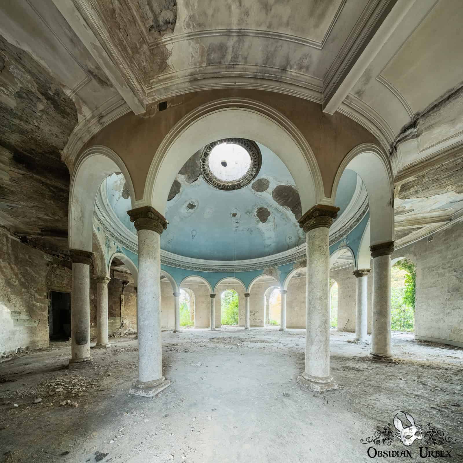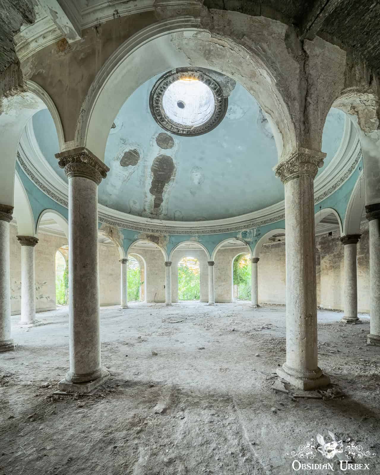 Sanatorium Imereti is one of the many abandoned resort buildings scattered across the spa town of Tskaltubo in western Georgia. Built during the Soviet period, it once formed part of the state system for health tourism, with workers travelling from across the USSR to this quiet valley. Today, the sanatorium stands vacant and decaying; you must navigate a maze of crumbling corridors to uncover its most beautiful scenes.
