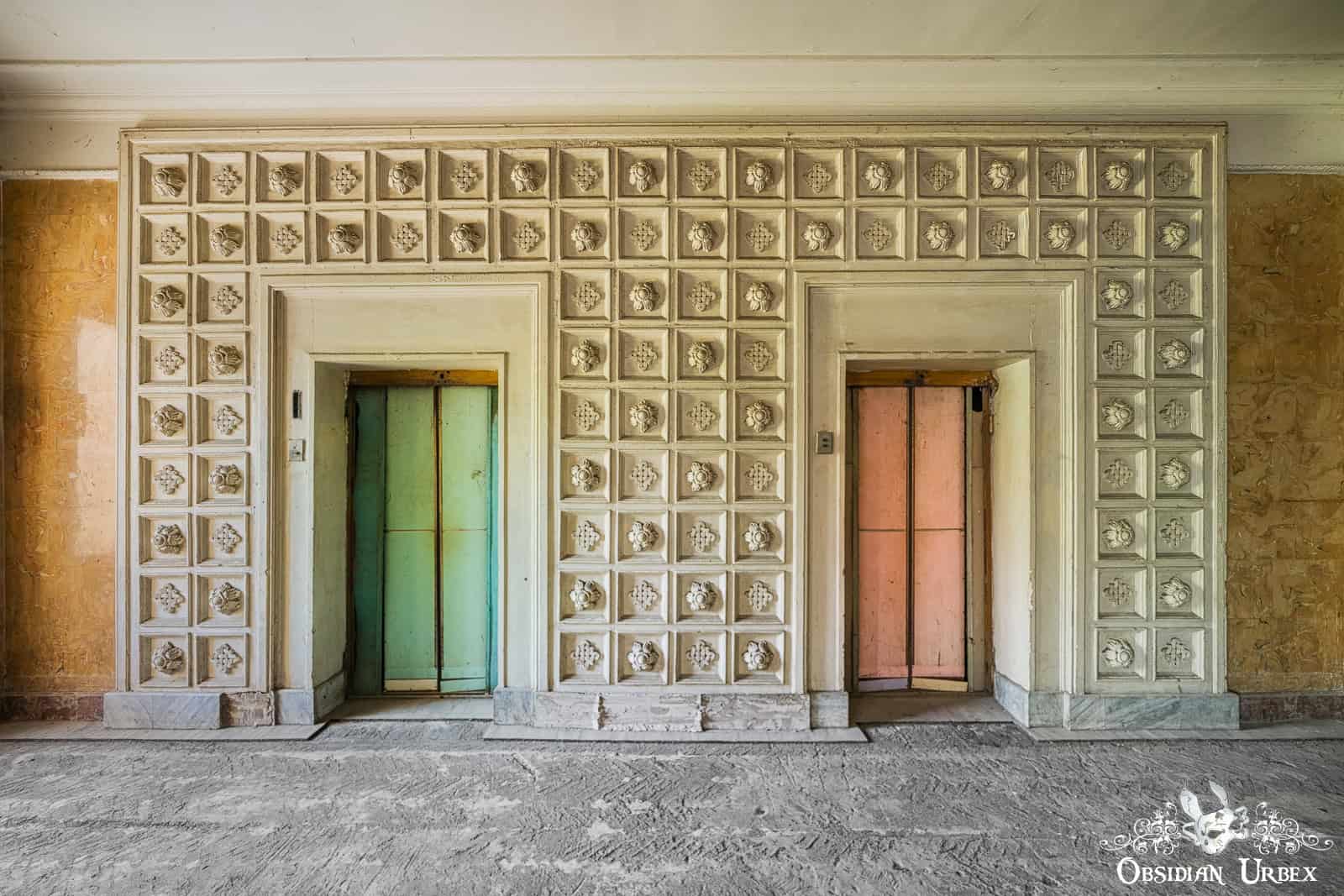 This sanatorium is a clear example of Stalinist Empire style, or Stalinist Neoclassicism. This style sought to blend the monumentality of Ancient Rome and Greece with Soviet symbols. This layout symbolised that the “palaces” of the past now belonged to the proletariat (the workers). There are also stone carvings and floral motifs, which are traditional Georgian ecclesiastical patterns that have been incorporated into the Soviet framework. These are notable; they occur around the elevator doors and line some of the hallway ceilings.