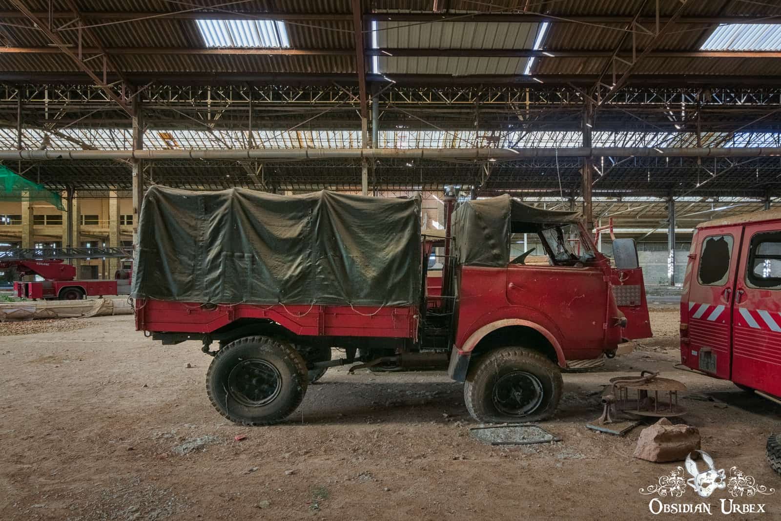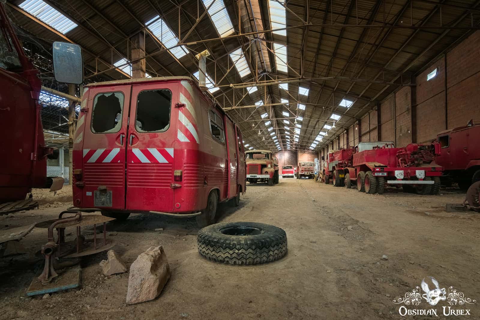 However, this older location was emptied of its red engines circa 2015. These fire engines were, mostly, taken by a museum in Switzerland. Given the large number of fire trucks that once resided here, it seems unlikely all of them were taken by a single museum. It is possible that some of the vehicles also were sold to other museums or private collections. Some online reports also suggest the museum deal fell through at the last moment. Perhaps these Sainte Barbe trucks are hidden in yet another factory, awaiting rediscovered.