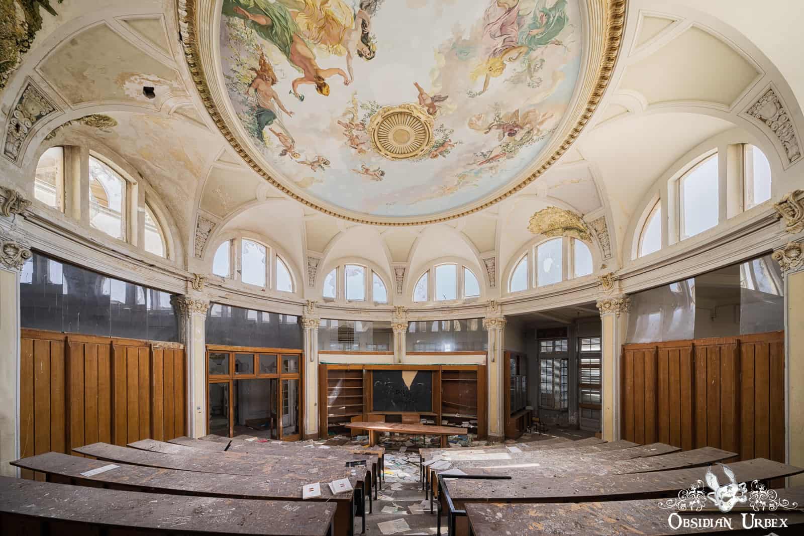 As decades pass, the styles and tastes of the time are artfully captured in the architecture and furnishings of the contemporary buildings. These abandoned buildings have now become a time capsule, capturing the essence of a time long ago. There are Art Nouveau and Rococo theatres hidden behind closed doors. Forgotten Neo-Classical styled Italian villas with beautiful frescoed ceilings lay waiting to be discovered again.